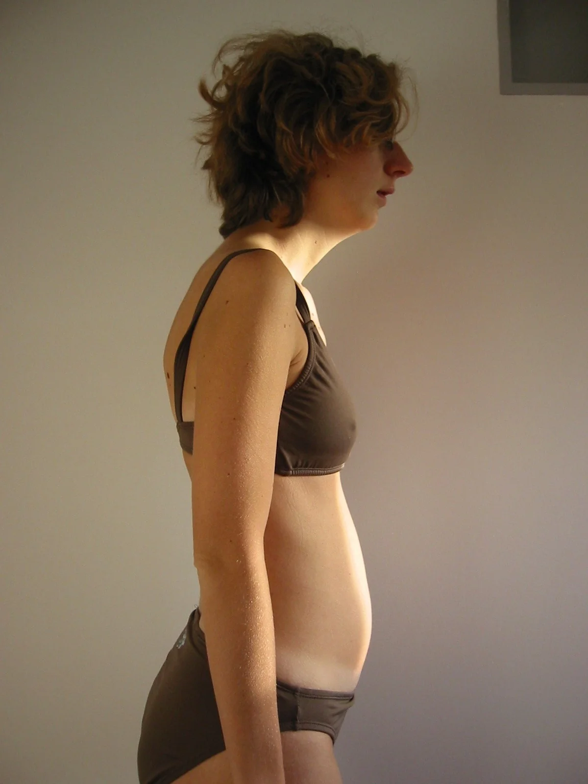 A slightly pregnant skinny woman from the Netherlands
