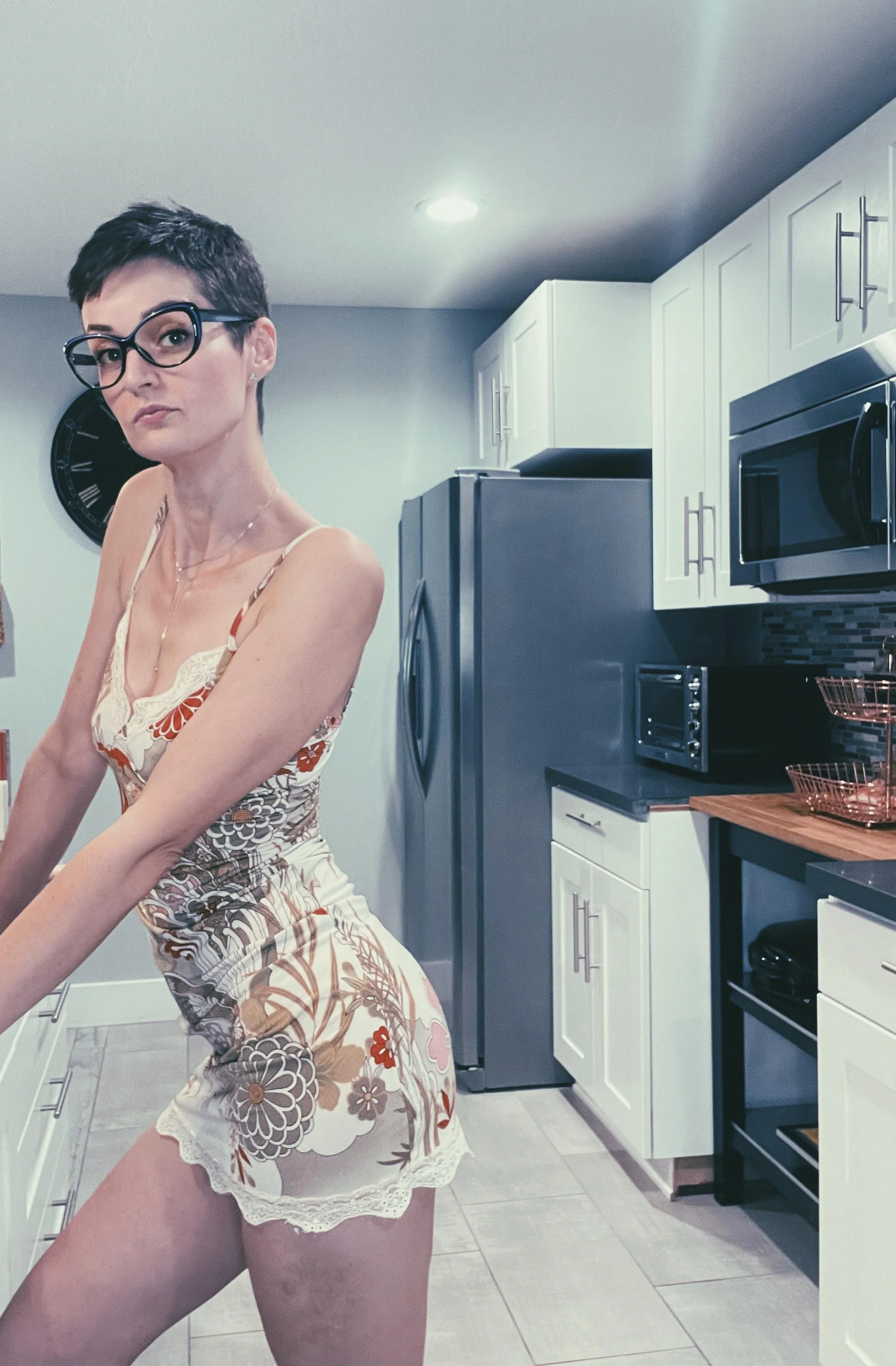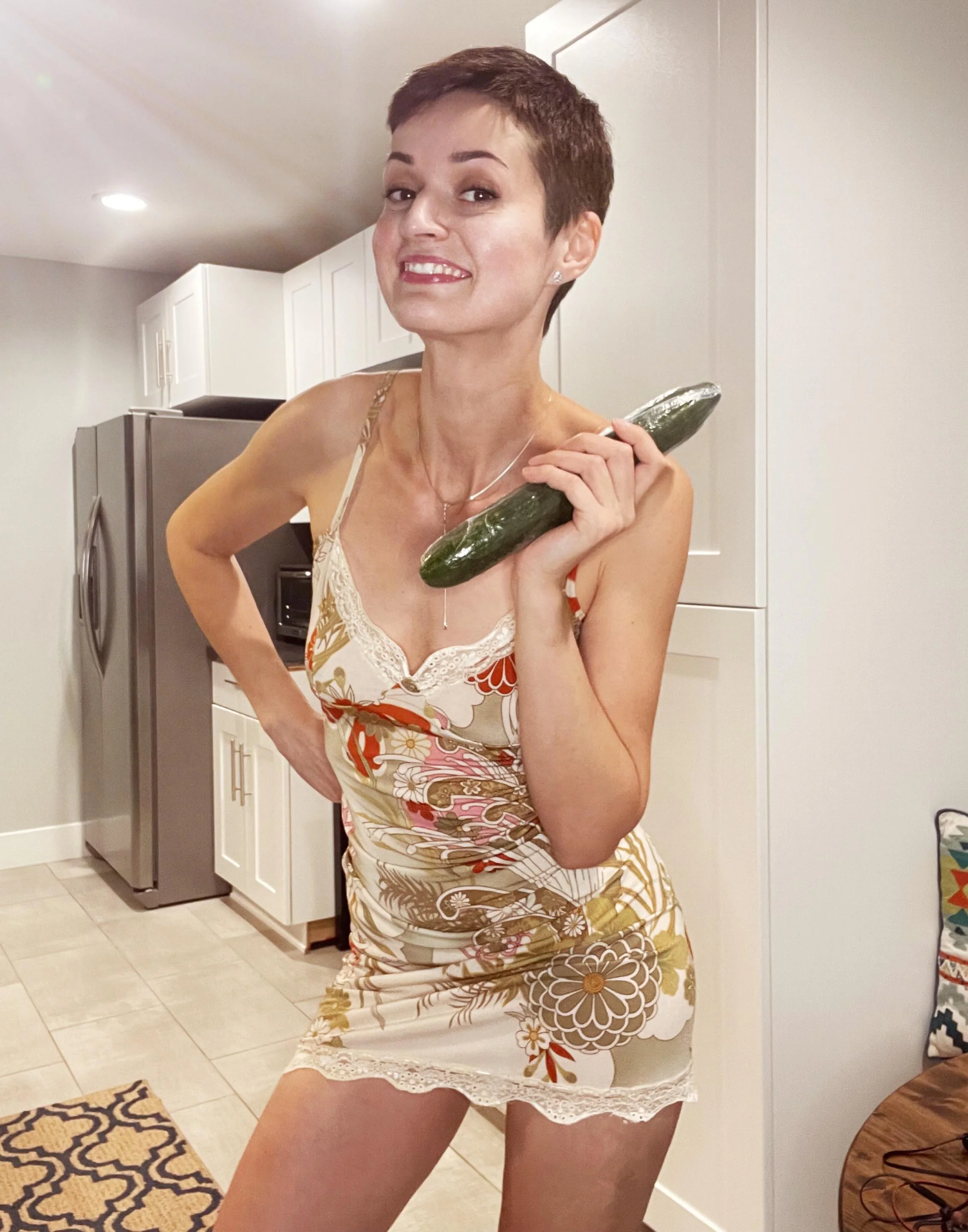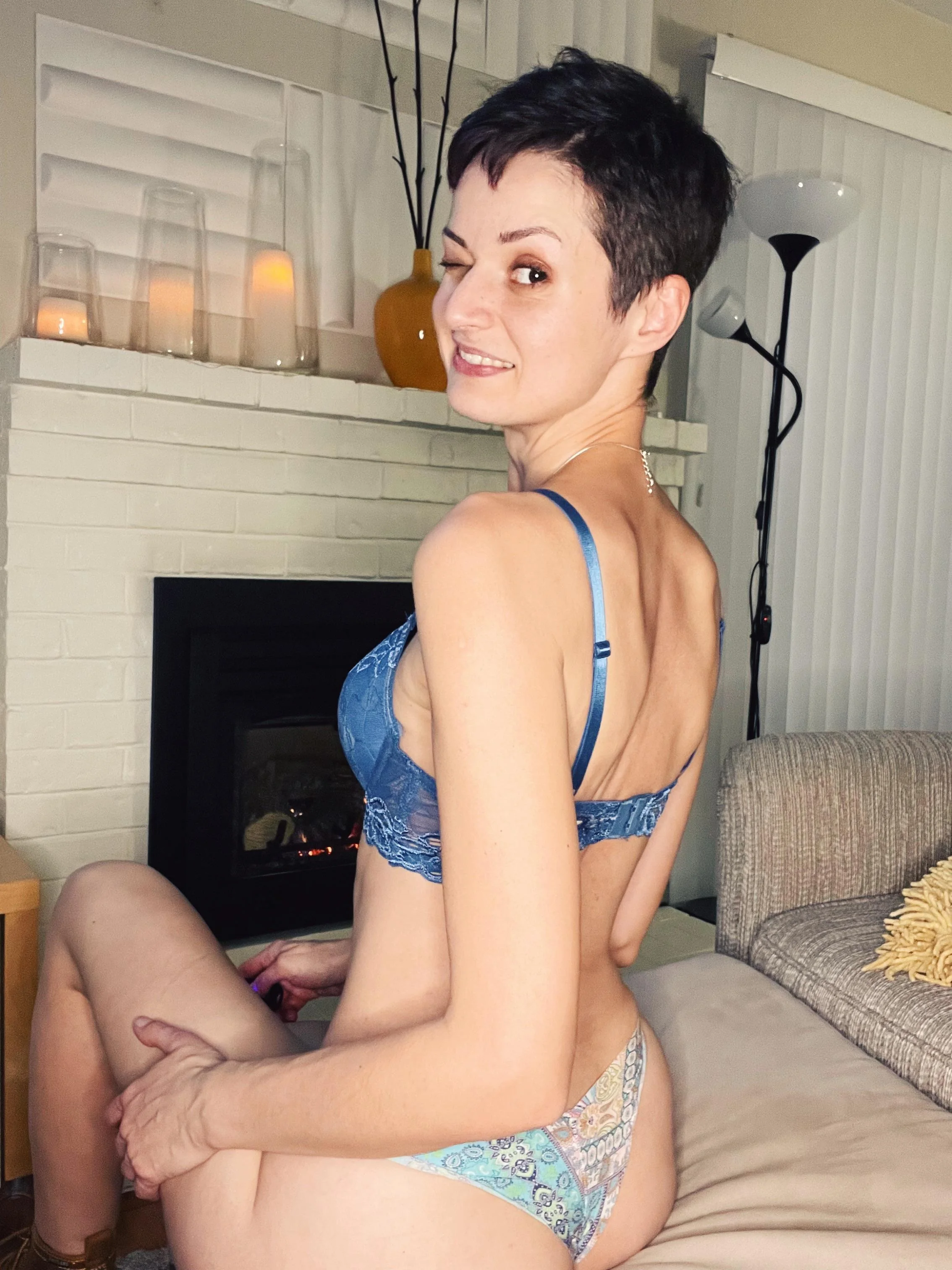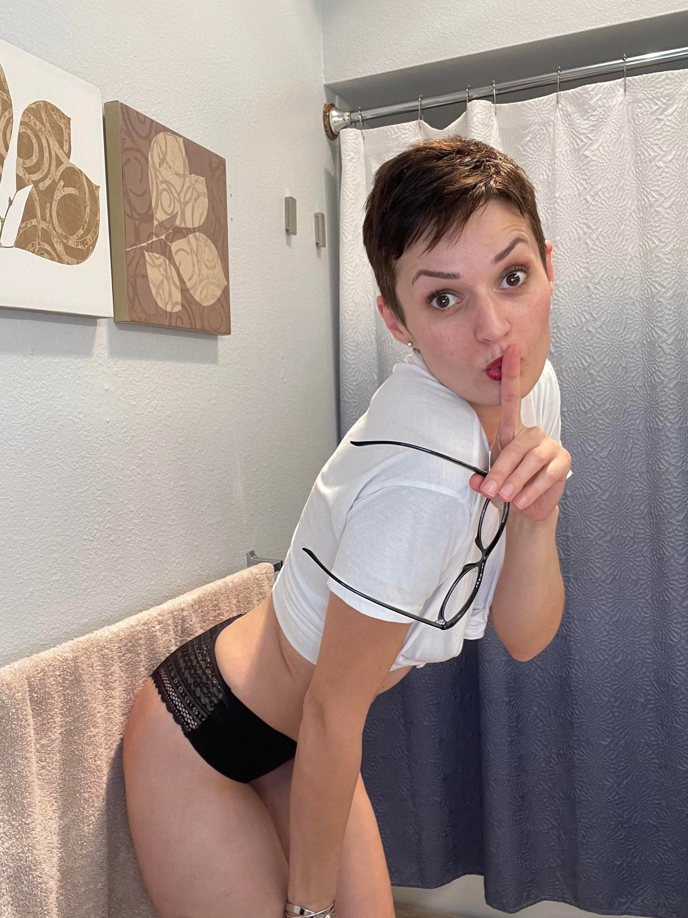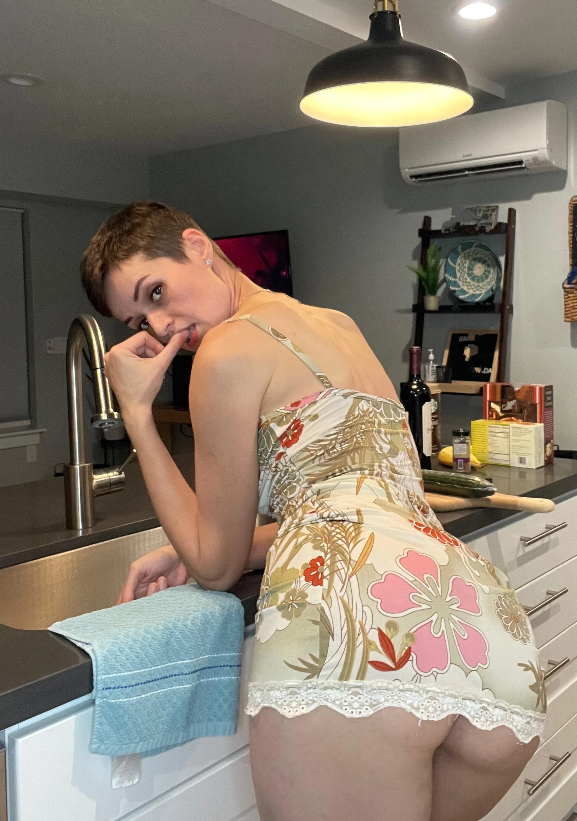 Una MILF delgada con tetas caídas