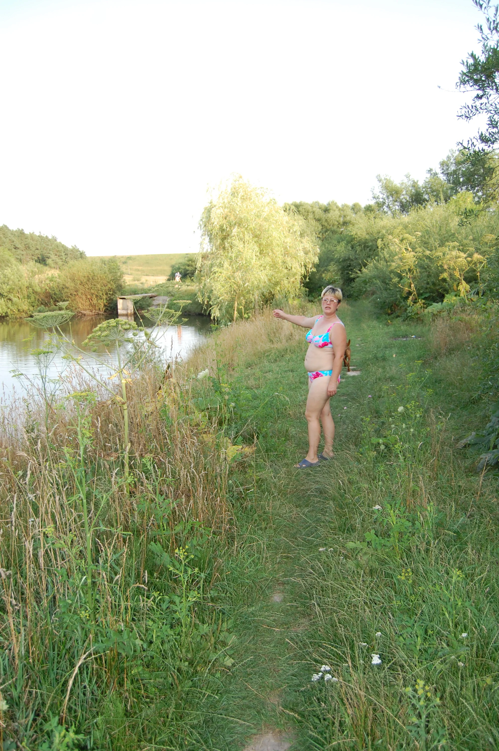 Descansó junto al lago y se desnudó un poco
