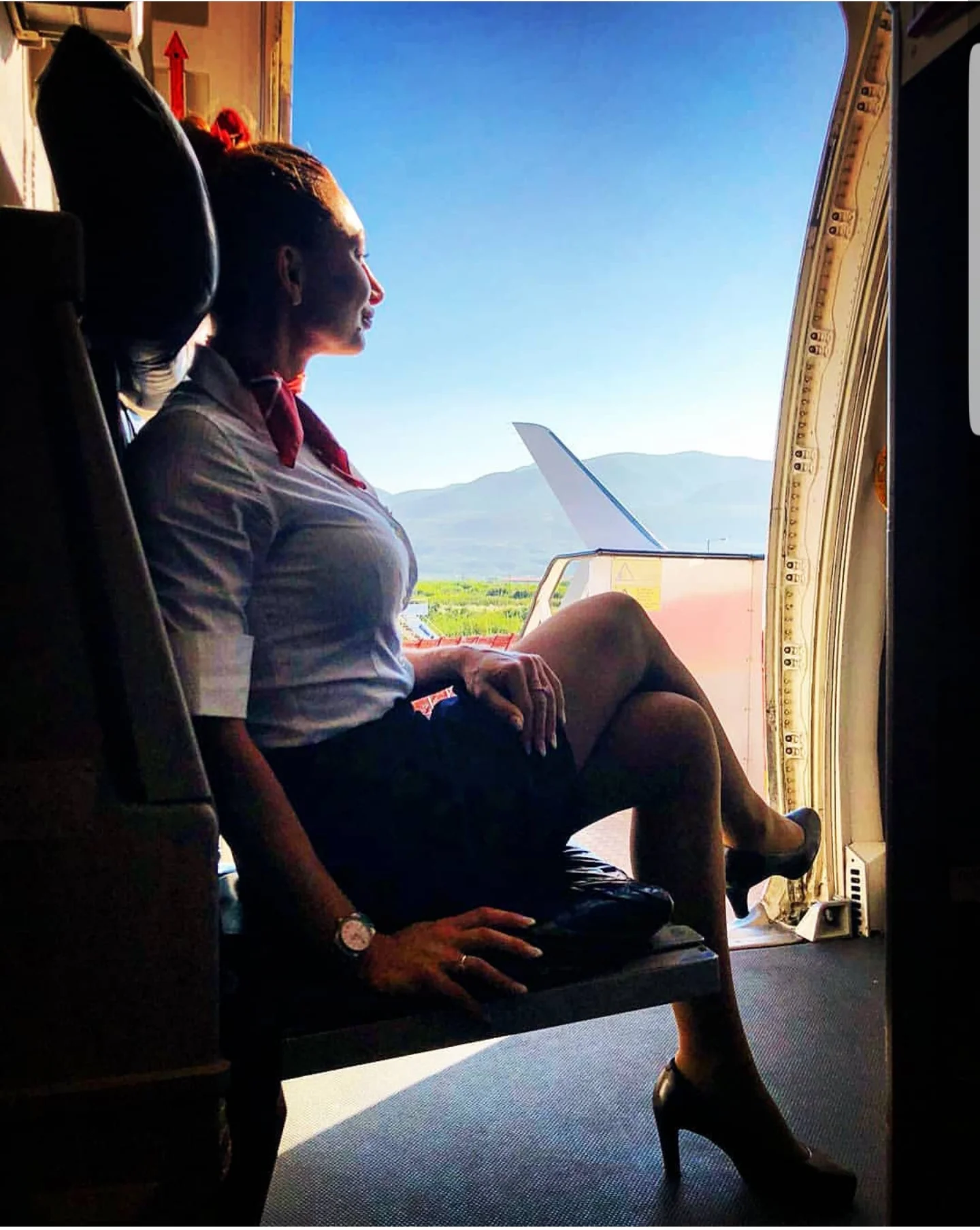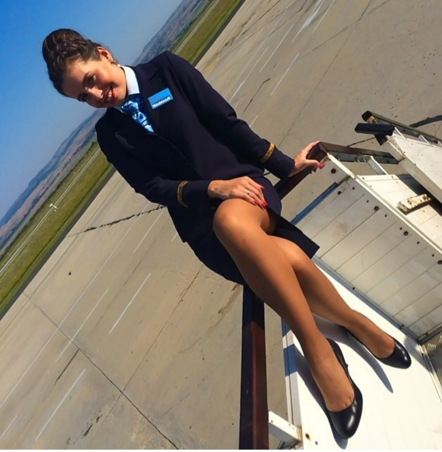 Atractiva azafata solitaria